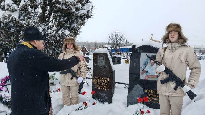 На кладбище города Сасово около могилы Владимира Николаевича в почетном карауле выстроились юнармейцы, ученики школы № 6. Иерей Александр Смирнов (ветеран МВД) отслужил панихиду. Сослуживцы и мама Владимира Андреева, Клавдия Владимировна Сницарева, добрыми словами вспоминали своего товарища и сына.