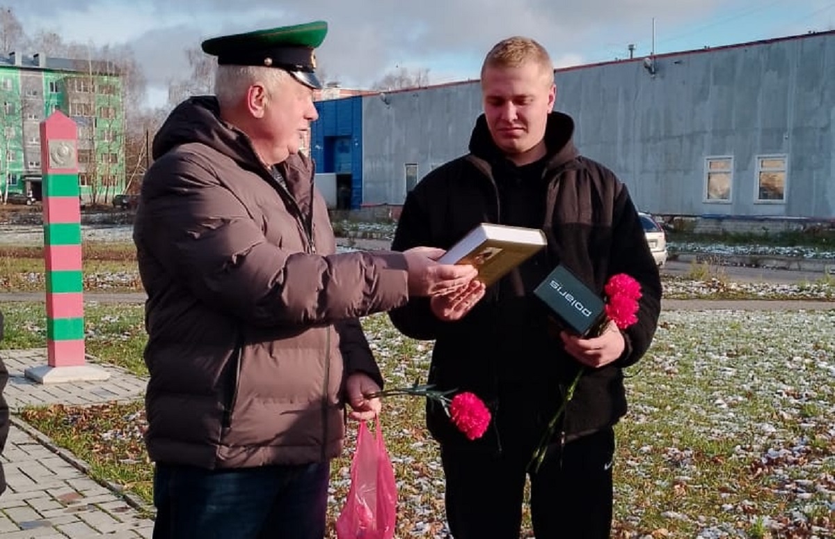 Ветераны дали напутствие призывнику, рассказали ему об особенностях службы по охране государственной границы, об истории и традициях пограничных войск. Пожелали здоровья, достойно отслужить и вернуться в родной город, вручили памятный подарок. А также возложили цветы к памятнику пограничникам.