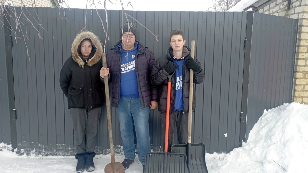 Активисты Сасовского местного отделения «Молодой Гвардии» помогли жене участника специальной военной операции с уборкой придомовой территории от снега.