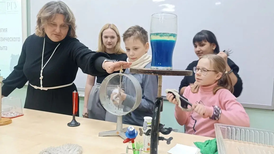 Ученики пятого, шестого и восьмого классов школы № 1 вместе с учителем физики Натальей Щеголевой и учителем информатики Екатериной Бычковой посетили РГУ имени С.А. Есенина.